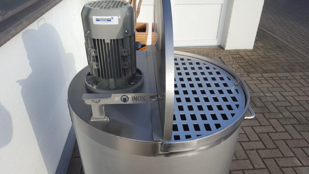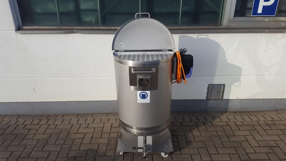 Mobile, elektrisch beheizte Behälter mit und Rührwerk auf Rollen. >Weitere Informationen Rührwerksbehälter < >Weitere Informationen Lagerbehälter < Die Aufheizung erfolgt über ein Wärmeträgermedium im Doppelmantel, welches elektrisch aufgeheizt wird. Durch die indirekt Beheizung des Innenbehälters brennt nichts an, es wird am Zylinder und Boden erhitzt.