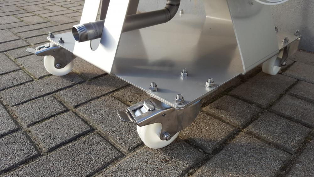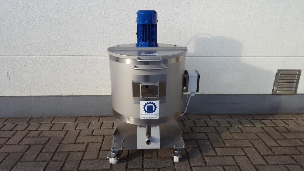 Mobile, elektrisch beheizte Behälter mit und Rührwerk auf Rollen. >Weitere Informationen Rührwerksbehälter < >Weitere Informationen Lagerbehälter < Die Aufheizung erfolgt über ein Wärmeträgermedium im Doppelmantel, welches elektrisch aufgeheizt wird. Durch die indirekt Beheizung des Innenbehälters brennt nichts an, es wird am Zylinder und Boden erhitzt.
