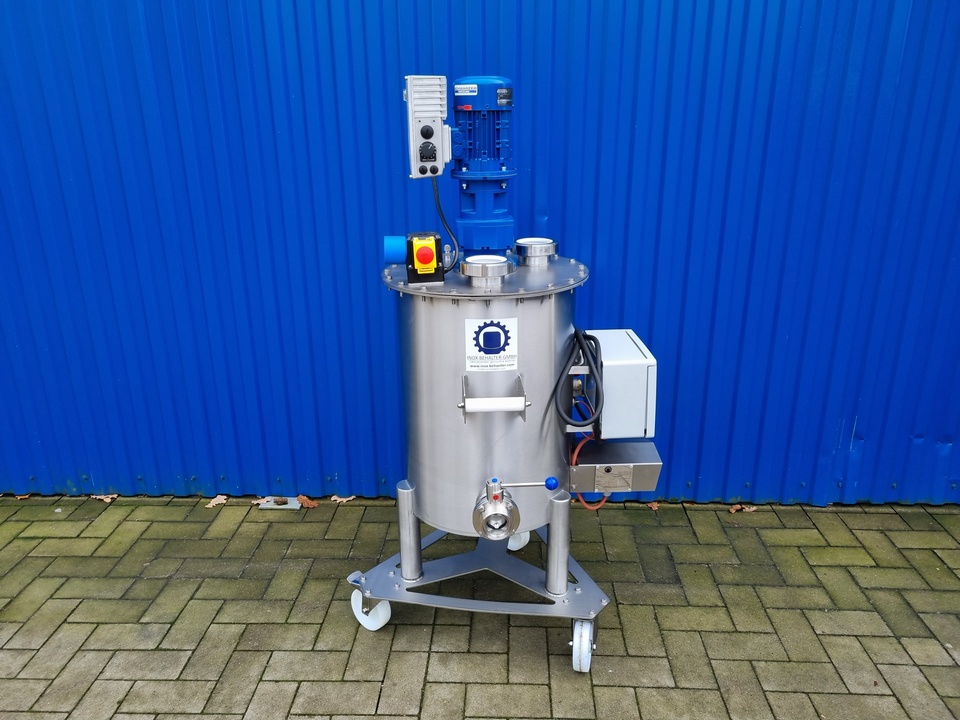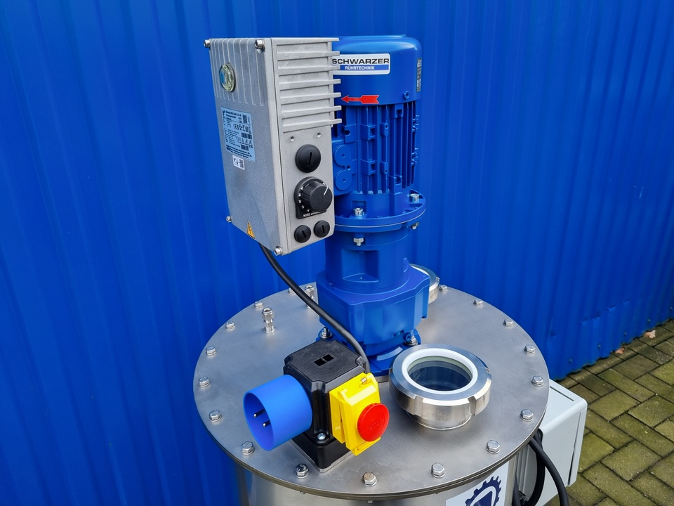 1x 60L elektrisch beheizter Edelstahlbehälter mit Rührwerk für Chemie