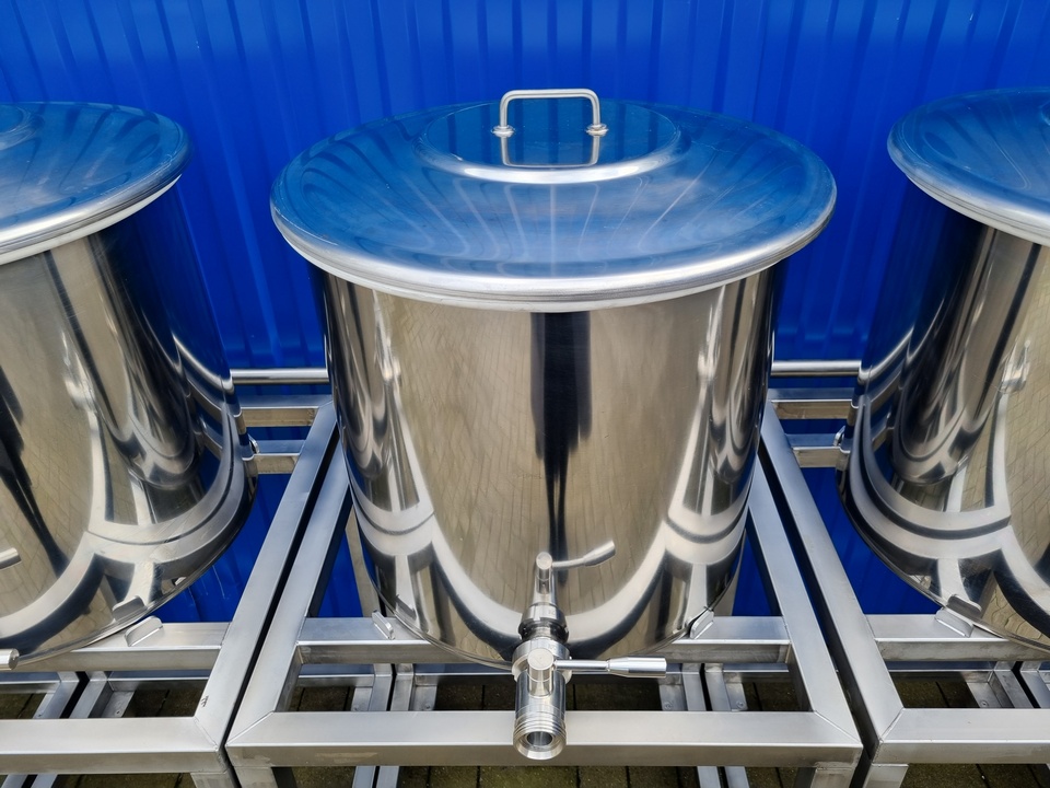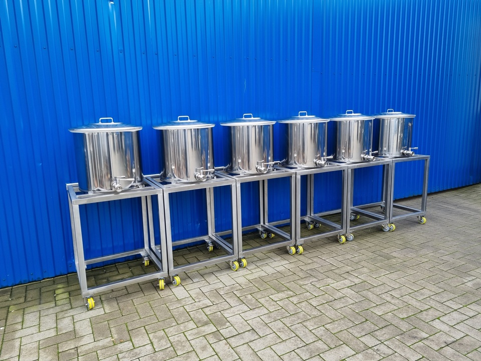 6x 100L BOP100 Edelstahlbehälter mit Spannringdeckel und Rollwägen für Chemie 6x 100L BOP100 Edelstahlbehälter mit Spannringdeckel und Rollwägen für Chemie