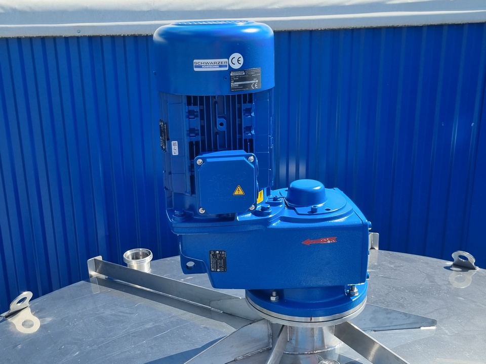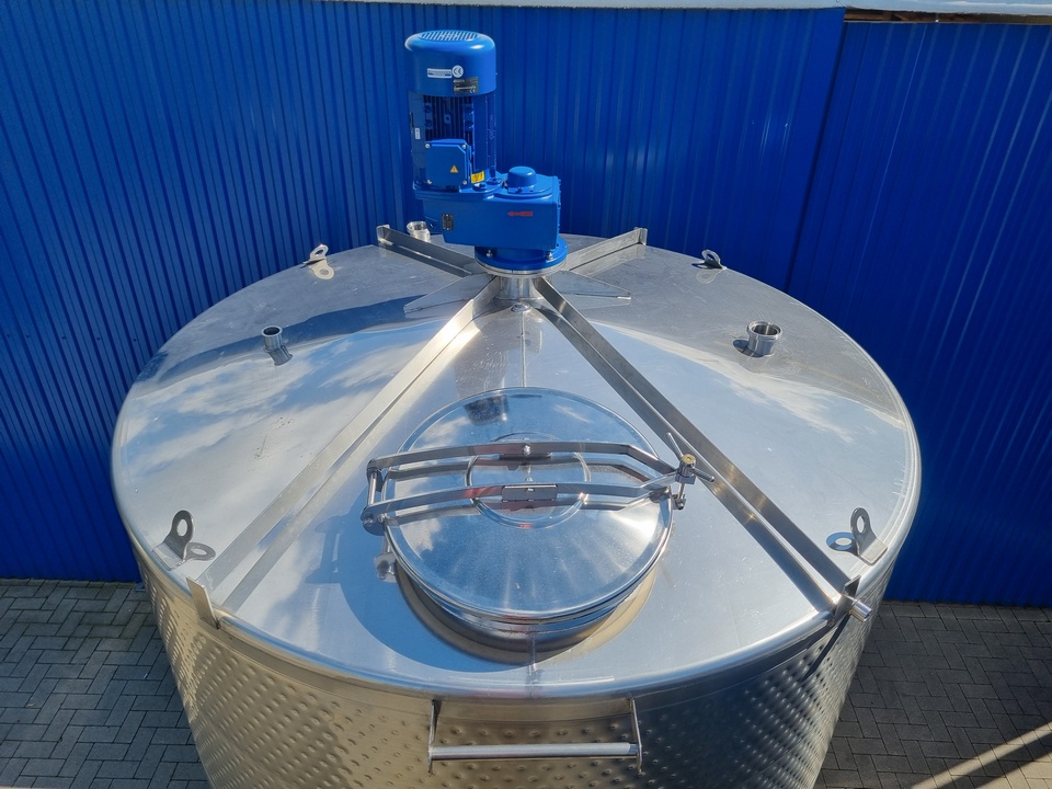 | Extras | Ø 600mm Mannlochdeckel mit Schwenkbügel auf dem Oberboden, Dichtung NBR, 3x Stutzen DN65 DIN11851 mit Blindkappe, 4x Kranöse, 1x Rührwerksflanschstutzen mit Verstärkungen, 1x Leiterbügel 2x Thermoplate H=900mm (H=1800mm vom Zylinder bedeckt) mit Zwangsführung, Anschlüsse 3/4", 1x Thermoplate am Unterboden, Ein-/Ausgangsstutzen 3/4", 1x ovales Mannloch |