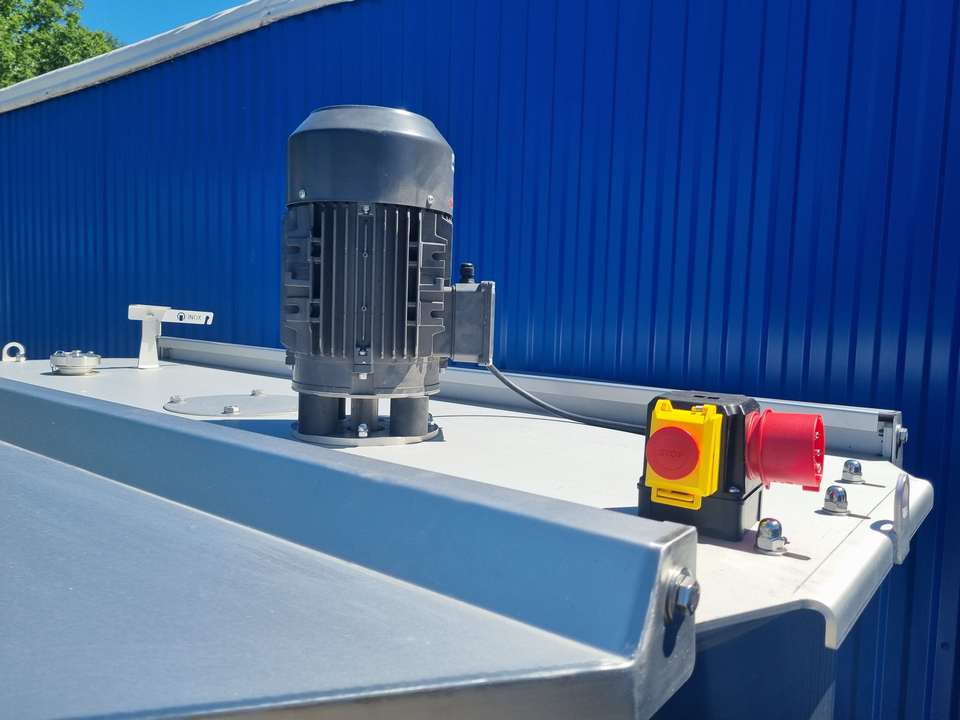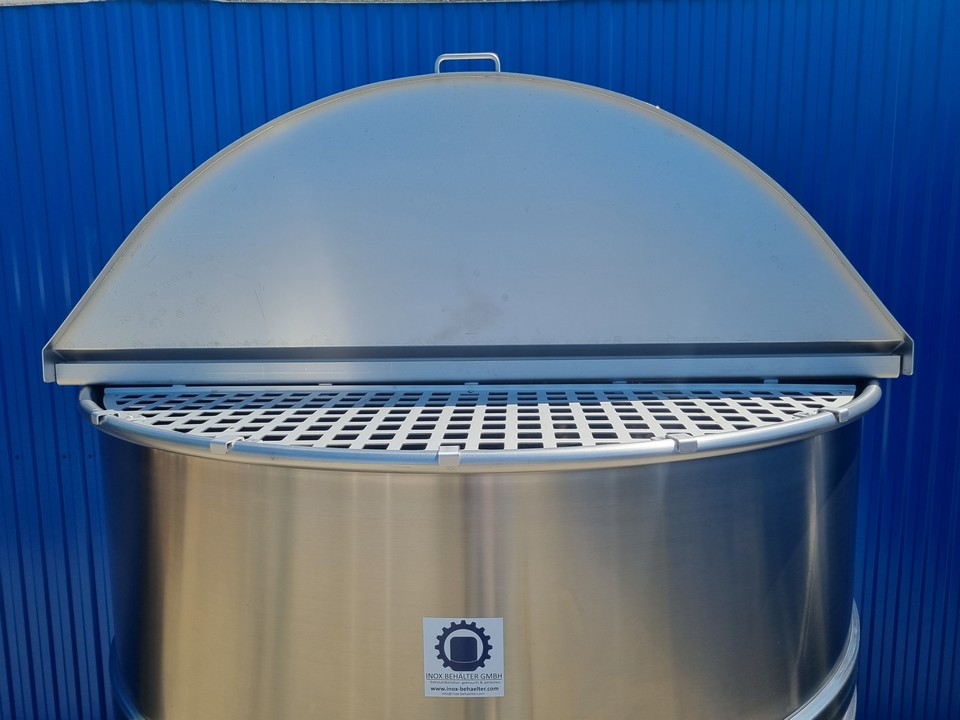 | Extras | 1x Mittige Traverse mit zwei Klappdeckelhälften, Edelstahl Blechroste unterhalb des Klappdeckels als Eingreifschutz, verschraubt, herausnehmbar, Rastfunktion für Klappdeckel, 1x Halbrohrschlange H=ca. 1420mm am Zylinder, Ein-/Ausgang 5/4" |