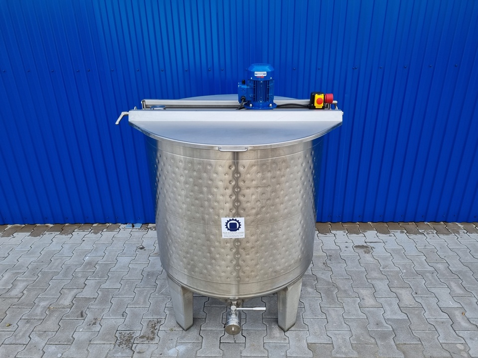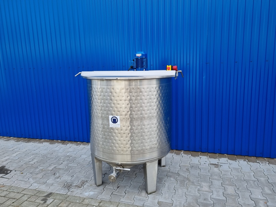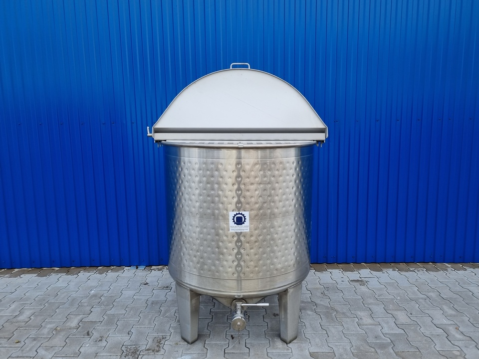 | Extras | 1x Thermoplate H=750mm um den zyl. Teil des Behälters, Betriebsdruck max. +3Bar, Ein-/Ausgangsstutzen 3/4" Nippel; 1x Klappdeckel auf dem Oberboden, 2 Klappdeckelhälften, Rastfunktion (Deckel können in offener 90° Position eingerastet werden); Edelstahl-Blechrosten unterhalb des Klappdeckels, verschraubt, herausnehmbar; 1x Einlaufstutzen DN50 DIN11851 auf dem Oberboden |