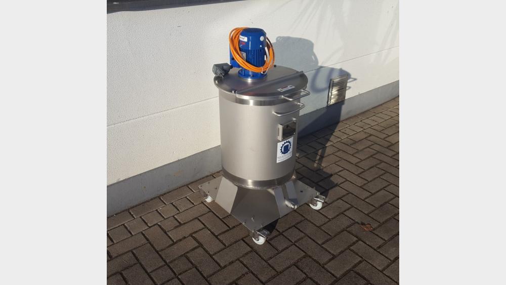 Mobile, elektrisch beheizte Behälter mit und Rührwerk auf Rollen. >Weitere Informationen Rührwerksbehälter < >Weitere Informationen Lagerbehälter < Die Aufheizung erfolgt über ein Wärmeträgermedium im Doppelmantel, welches elektrisch aufgeheizt wird. Durch die indirekt Beheizung des Innenbehälters brennt nichts an, es wird am Zylinder und Boden erhitzt.