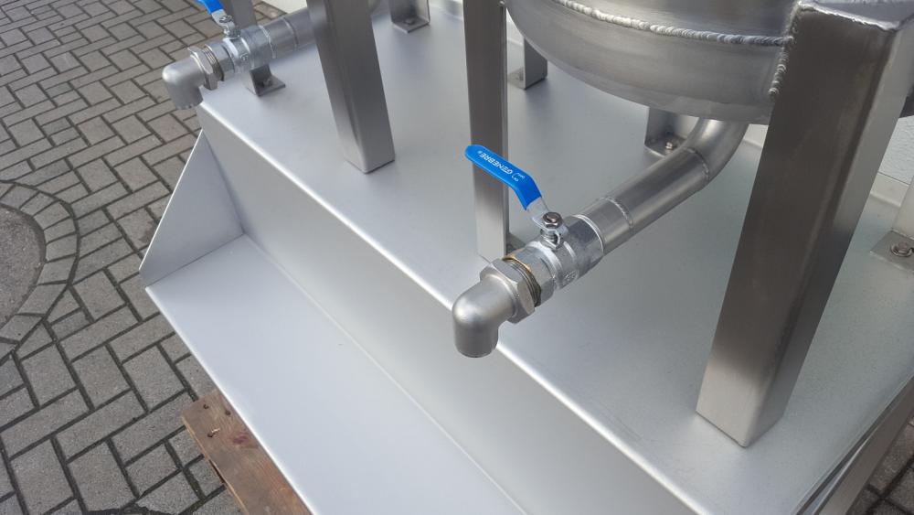 Mobile, elektrisch beheizte Behälter mit und Rührwerk auf Rollen. >Weitere Informationen Rührwerksbehälter < >Weitere Informationen Lagerbehälter < Die Aufheizung erfolgt über ein Wärmeträgermedium im Doppelmantel, welches elektrisch aufgeheizt wird. Durch die indirekt Beheizung des Innenbehälters brennt nichts an, es wird am Zylinder und Boden erhitzt.