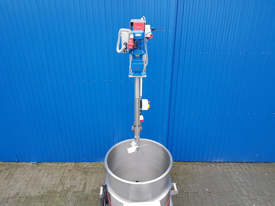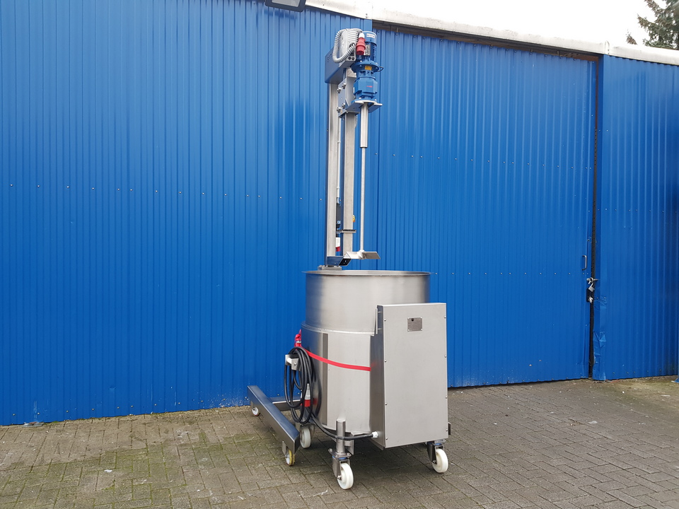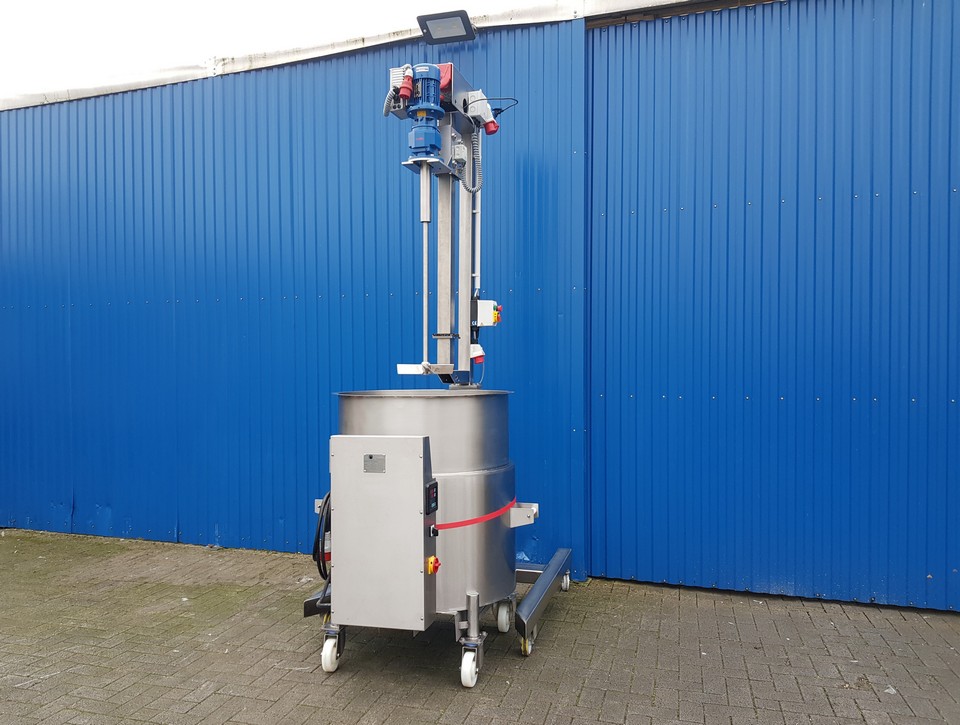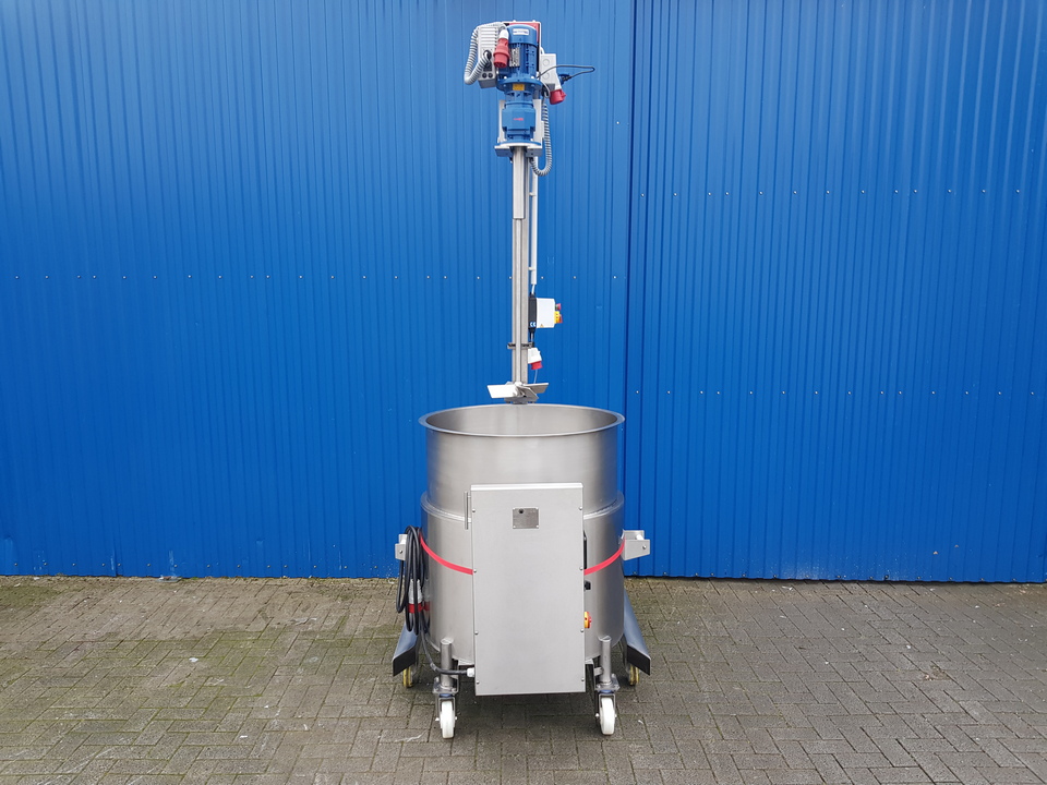 Mobile, elektrisch beheizte Behälter mit und Rührwerk auf Rollen. >Weitere Informationen Rührwerksbehälter < >Weitere Informationen Lagerbehälter < Die Aufheizung erfolgt über ein Wärmeträgermedium im Doppelmantel, welches elektrisch aufgeheizt wird. Durch die indirekt Beheizung des Innenbehälters brennt nichts an, es wird am Zylinder und Boden erhitzt.