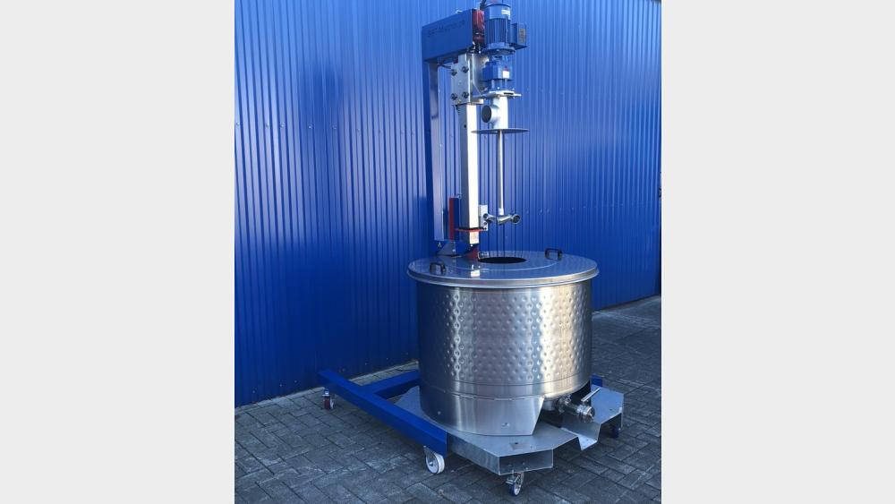Edelstahlbehälter auf Rollen mit und ohne Rührwerk Typ COR und SCL, modifizierbar für viele Anwendungen. Propellerrührer: Homogenisieren und Mischen von niedrigviskosen Produkten Dissolver: Dispergieren und Mahlen von Produkten, Agglomerate und Pulver lösen Becherrührer: Schonendes Homogenisieren ohne Lufteintrag, auch für viskosere Produkte Balkenrührer: Homogenisieren und Mischen von niedrig- bis mittelviskosen Produkten